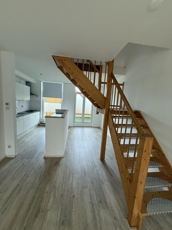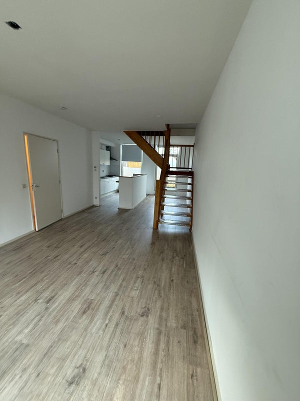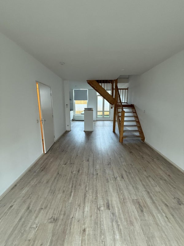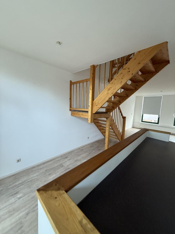 You enter the apartment from the street side via the stairs. On this living floor, you find the living room with an open kitchen and the toilet.