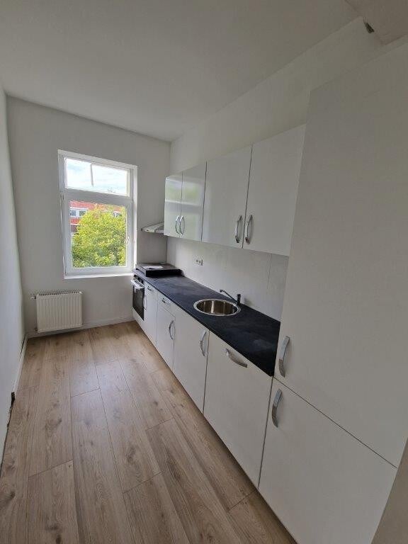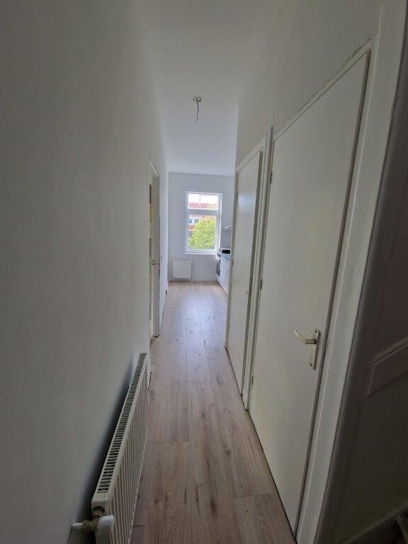 This 3-room apartment in the center of Schiedam offers 110 m² of living space and is available immediately for a minimum of one year. Located on the third floor, it features a spacious living room at the front, a closed kitchen with necessary appliances, and a bedroom accessible from the living room. On the fourth floor, there's a large bedroom with access to the rooftop terrace, a bathroom with walk-in shower, sink, and toilet, and additional storage space. The apartment is equipped with a new laminate floor, double glazing, and an energy-efficient heating system. Solar panels on the roof also contribute to low electricity costs. The rent is € 1,600, with a deposit of two months' rent.