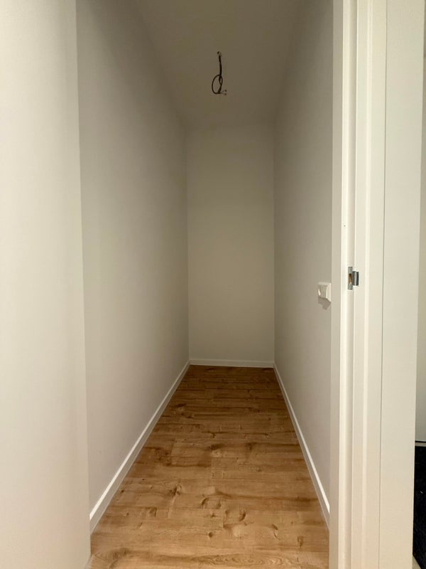 The apartment has one spacious bedroom and an additional room that is perfectly suitable as a walk-in closet, workroom, or hobby room.
