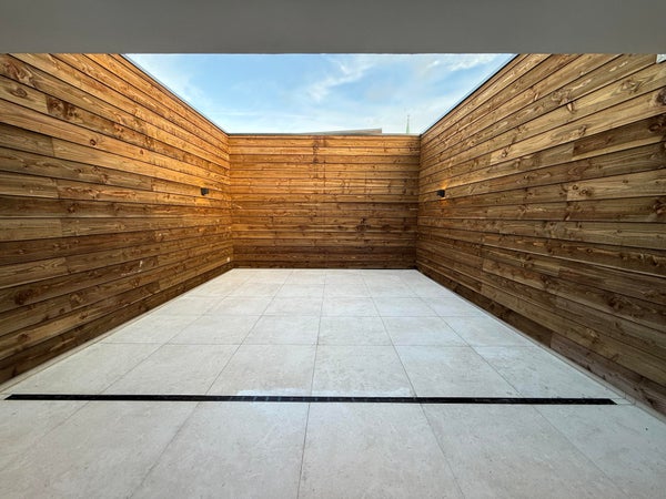 The patio is fully tiled and neatly finished with a wooden fence, allowing you to enjoy a peaceful outdoor space right in the middle of the city.
