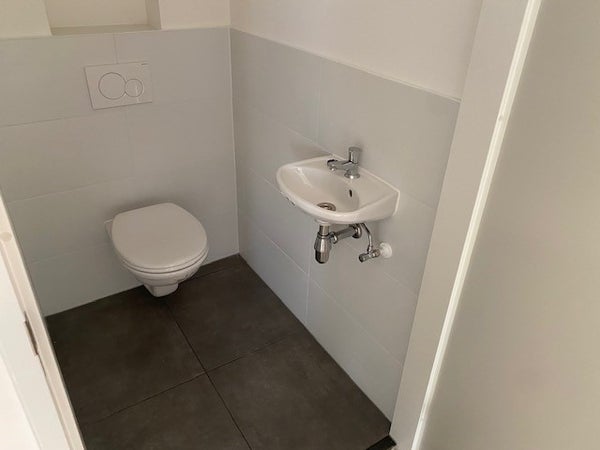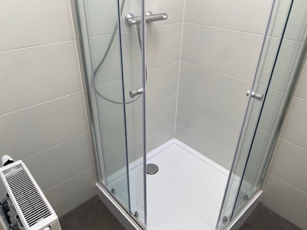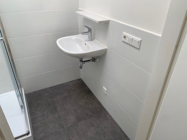 Modern bathroom, which is provided with a shower, sink, mirror, washing machine connection and mechanical extraction. Seprate toilet.