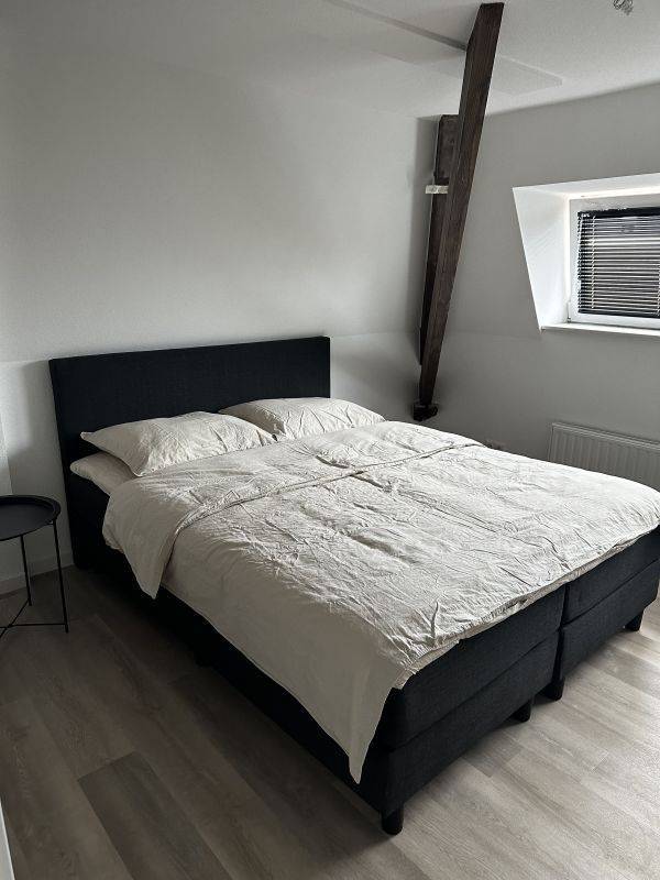 The apartment features a spacious living room with plenty of natural light and an open kitchen. The kitchen is equipped with modern appliances and offers plenty of space. In addition, there is one bedroom. The bathroom is luxuriously finished and equipped with a walk-in shower and a double sink. There is also a separate toilet and a storage room with a washing/drying combi machine in one.