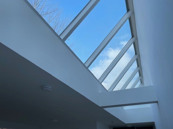 The kitchen is equipped with combination oven, handleless kitchen cabinets, induction hob, dishwasher, fridge freezer and extractor fan.