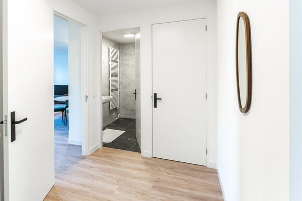 The apartment boasts a minimalist design and is furnished with all the essential electrical equipment, giving it a warm, cozy home feel.