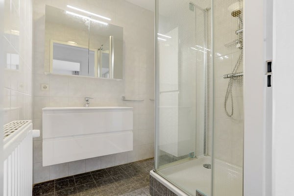 This modern 3-room apartment is located on the outskirts of the city center and is a gas-free home, fully sustainable with solar panels and electric heating. The apartment features two balconies, a private storage room, a parking space, and a garage in a closed area. The second floor can be accessed via the lift, leading to a hall with access to all rooms. The bright living room and kitchen (combined 51 m²) have large windows and come equipped with an integrated fridge, stove, extractor fan, microwave, and dishwasher. The master bedroom (approx. 18 m²) has a built-in wardrobe, while the second bedroom is about 10 m². The bathroom includes a shower and sink, with a separate toilet in the hall. Additionally, there is a spacious storage room (about 6.5 m²) with electricity. Monthly service costs are €130.00.