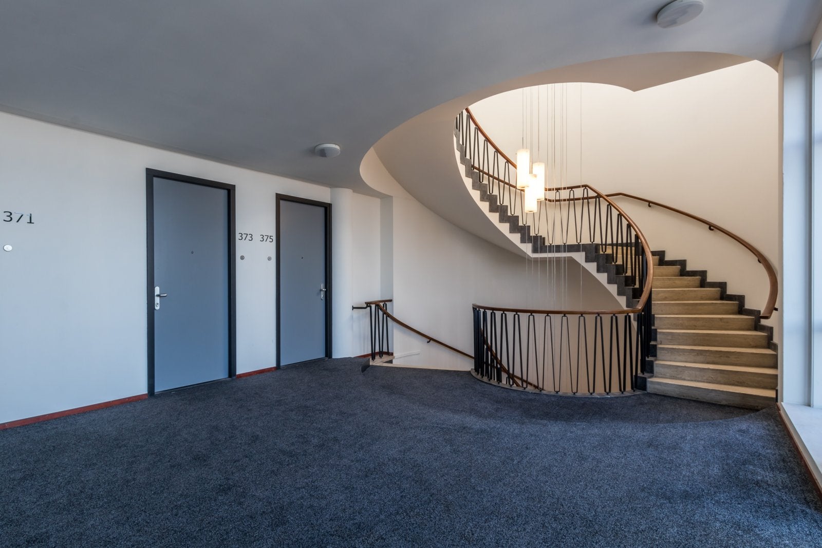 The entrance, with its stairs and prominent façade, reflects its past as a school. Inside, a lift takes you to the ten floors, offering beautiful views of Utrecht. Maintenance and security are provided by +Jack for eight hours a week. Additionally, there’s a communal room available for residents to reserve. Conveniently located near the Vecht with good transport links. Happy Living!