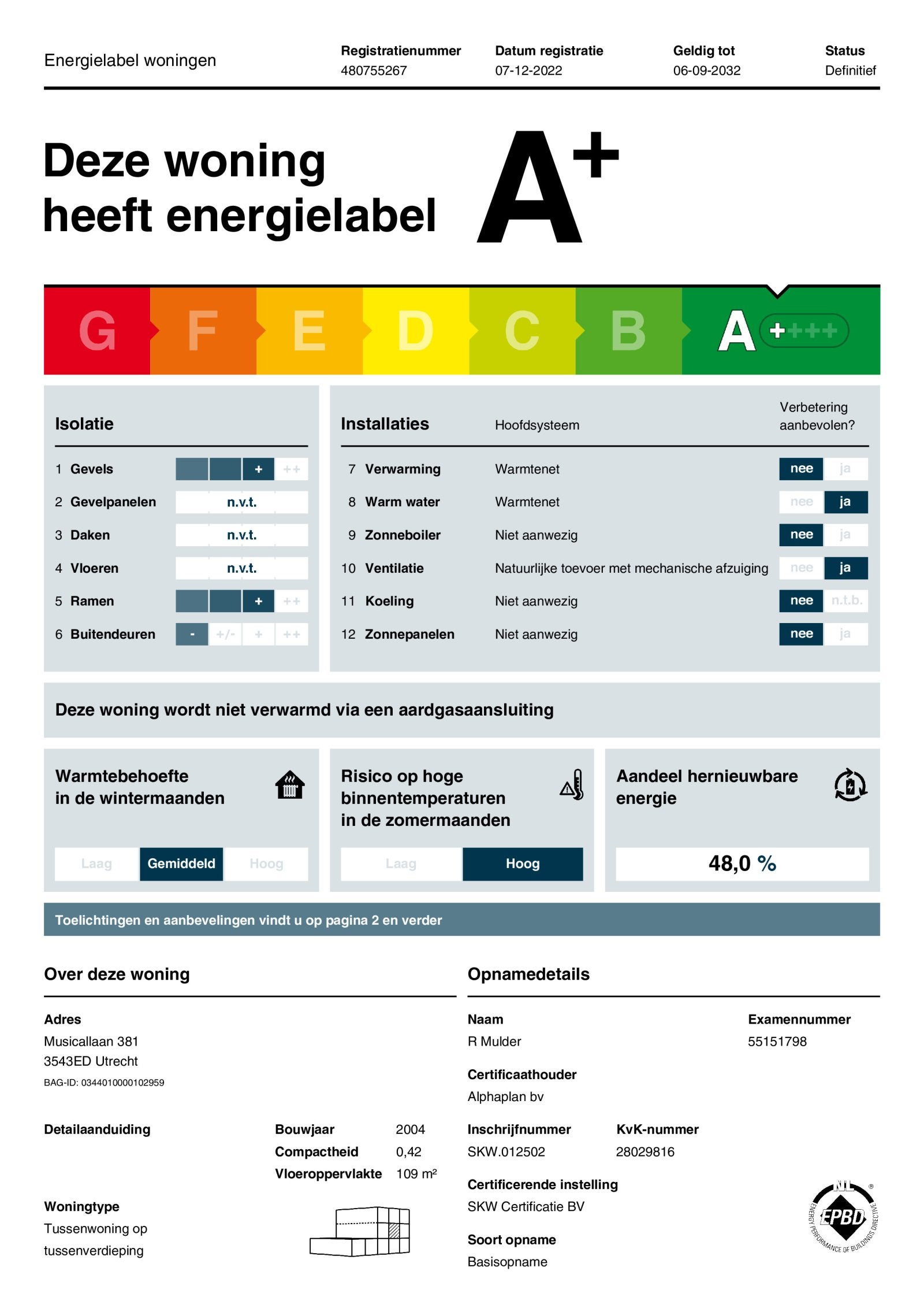 For rent: a modern and well-maintained apartment located at Musicallaan 381. This appealing home offers a comfortable layout, ideal for couples or small families. It has a spacious area of about 109 m² and features 2 bedrooms. The efficient design and large windows provide plenty of natural light, creating a pleasant atmosphere. The property is situated in a well-connected neighborhood with various amenities such as shops, supermarkets, schools, and public transport nearby, along with ample green spaces and recreational options. Rent is € 1,487 per month, excluding € 35 service costs, available from May 1.