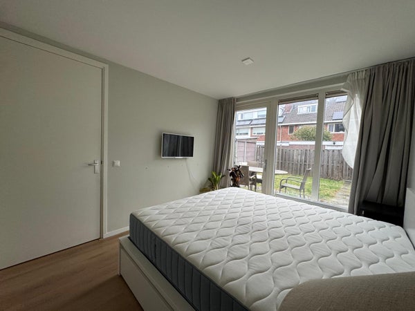 At the back, there are two bedrooms. Both have access to the garden.