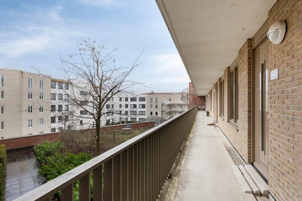 The spacious and bright living room forms the heart of the apartment and offers direct access to the balcony of approximately 10 m², located on the north side. The balcony is a pleasant outdoor space and serves as an extension of the living area.