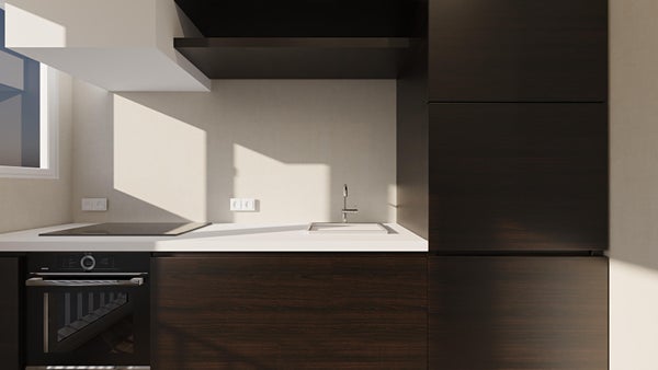 With a living area of 37 m², number 25-D is smartly and efficiently laid out. The property features one bedroom and is characterized by high ceilings and large windows that provide plenty of natural light. The bright living room is directly connected to the luxurious open kitchen, fully equipped with high-quality built-in appliances.