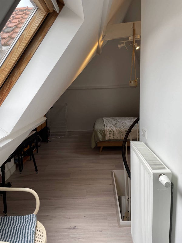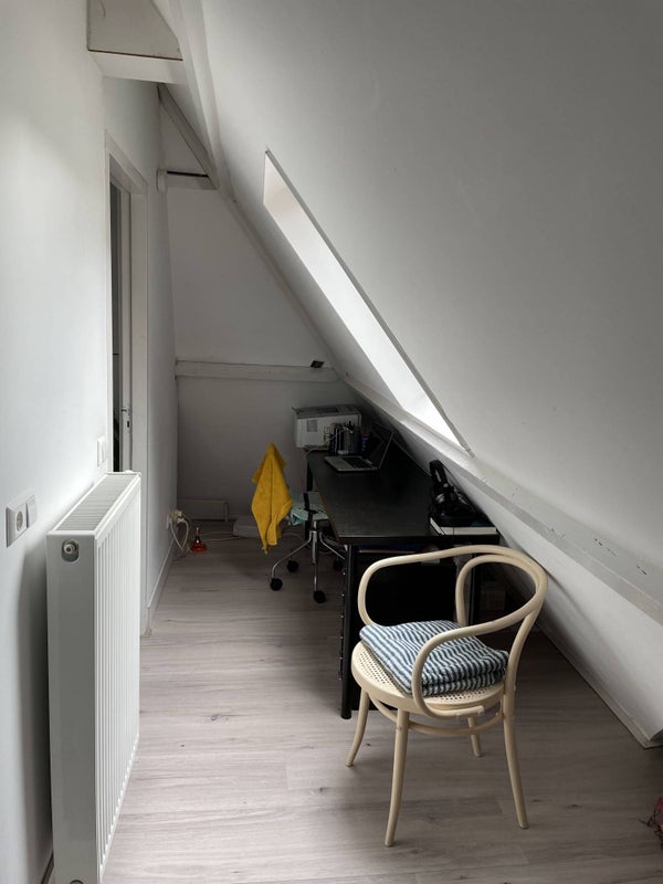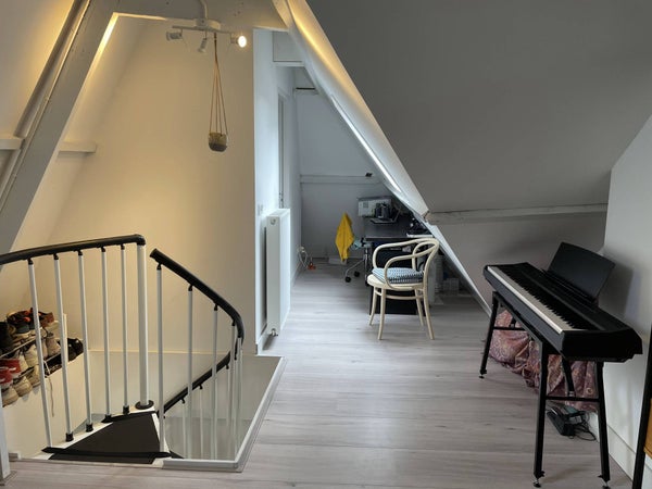 Shared entrance. Stairs to the second floor at the front of the building. Apartment entrance, bright living room with a kitchen equipped with, among other things, a refrigerator, oven, and dishwasher.