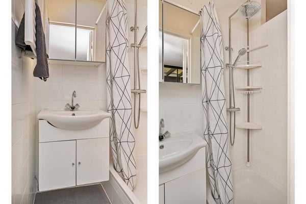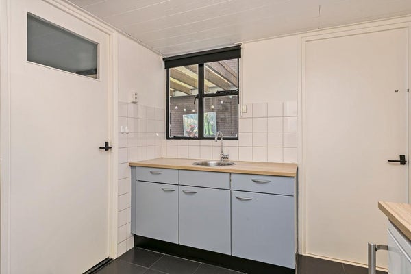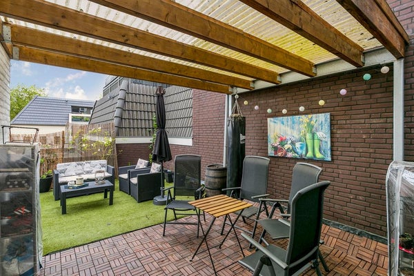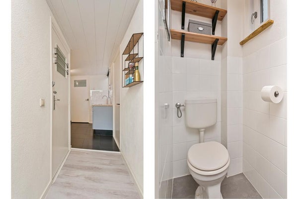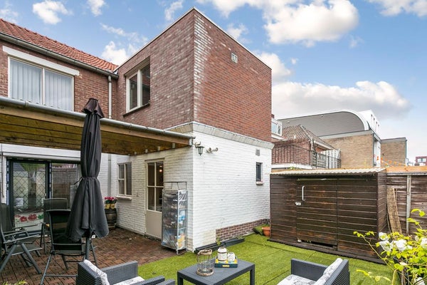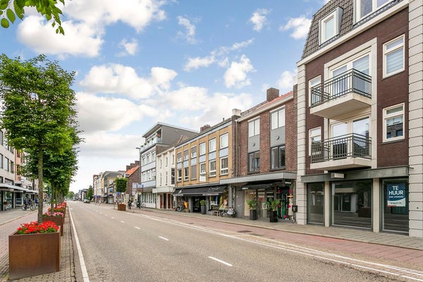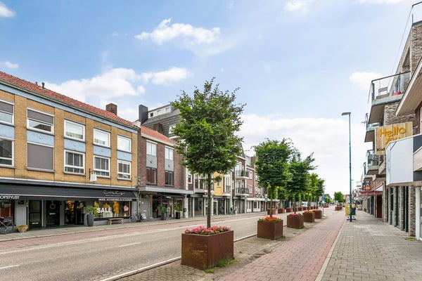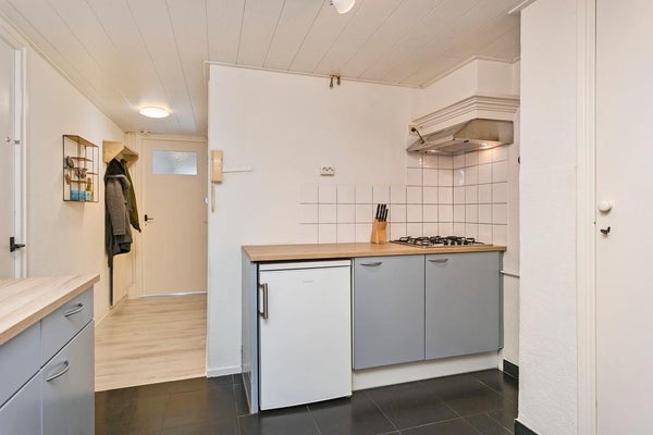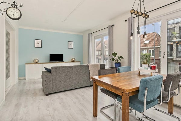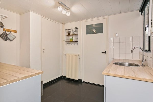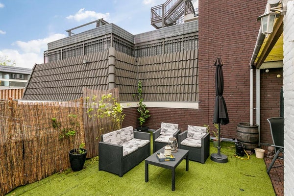 This fresh 2-room apartment on the first floor is located in the center of Valkenswaard, with all amenities within walking distance. The bright living room of approximately 22.5 m² leads to the spacious bedroom of about 12.8 m², which has access to a fantastic roof terrace of about 31.5 m². The semi-open kitchen, around 10.1 m², is equipped with a neat layout, and there is a utility room with connections for washing appliances. The apartment features a shower room and a partially tiled toilet. Situated in a quiet shopping street, the apartment has central heating and PVC window frames with double glazing. With a total area of 56 m² and a current rent of € 965,- per month, this is an ideal home.