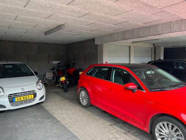 Ground floor: On the ground floor, you'll find your own covered outdoor parking space and the central entrance with a doorbell panel, mailboxes, staircase, and elevator access.