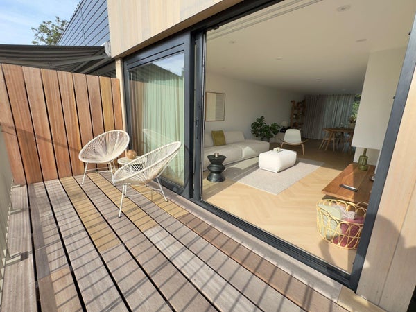 Both bedrooms are designed with comfort in mind, featuring soft bedding, storage and a calm, minimalist design that promotes rest and relaxation. The bathroom is sleek and functional, complete with a walk-in shower, toilet and modern fixtures.