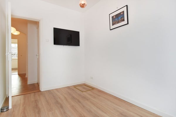 This beautifully located 4-room ground-floor apartment offers views over the quay along with a backyard and a small front garden. The location is ideal, just around the corner from public transport and shops. The modern kitchen, bathroom, and toilet are bright and functional. The apartment features its own central heating boiler and a shed in the backyard. A recently replaced sliding door gives access to the garden. With a heat pump, the property is very energy-efficient (A+ label). Layout: entrance via the porch, hall, living room with oak parquet floor and a glass wall leading to the rear bedroom. There are two bedrooms and a bathroom with a walk-in shower. Rent is €1,550 per month, available from February 2026.
