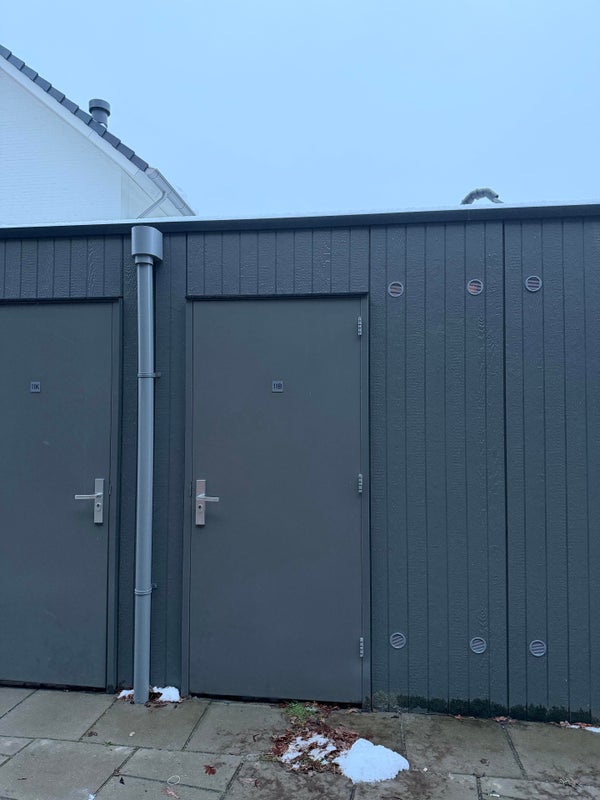 Behind the complex are the storage rooms, bicycle storage, and the enclosed parking lot.