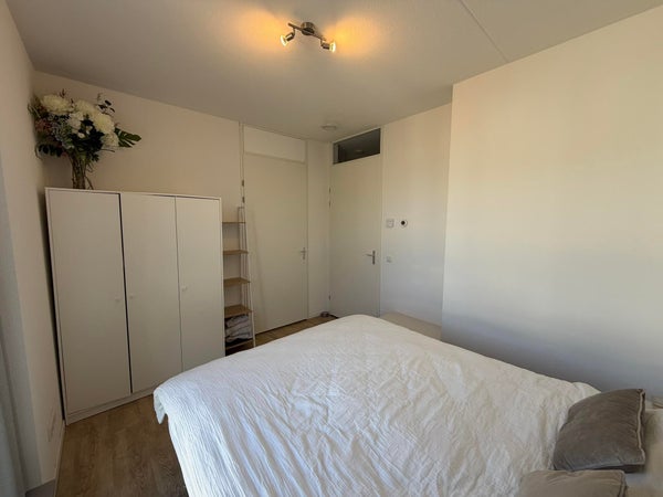 The living room is very light thanks to the glass front and has an open kitchen. The kitchen is equipped with all necessary built-in appliances, such as a fridge-freezer, induction hob, microwave-oven combination, and dishwasher. Via the livingroom the balcony, second bedroom and installation room can be accesed.