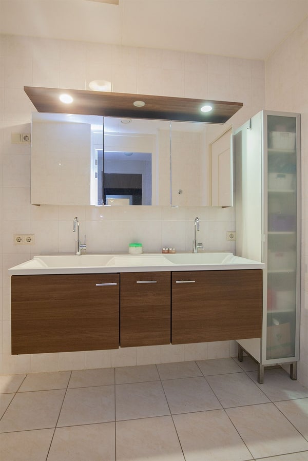 The master bedroom can be reached via a walk-through room / closet room and has an ensuite bathroom. This bathroom is equipped with bathroom furniture, walk-in shower and toilet.