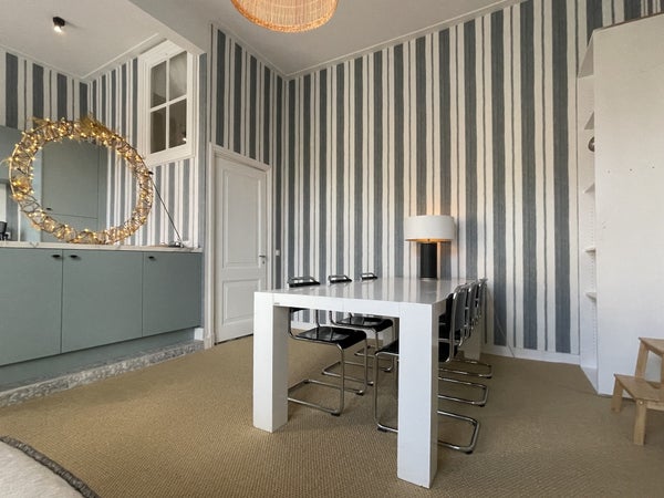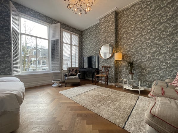 This enormous volume is located on the edge of the Zwolle city center, just outside the city canal and close to the station. A luxurious, spacious (100m2) apartment is immediately available for rent on the first floor of this beautiful building. The first floor has been renovated and attractively finished and fully furnished, so you can move in straight away! A unique opportunity to live in a prime location with all important amenities at a limited distance, in an old building with characteristic details but a luxurious apartment with modern comfort.