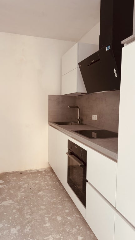 Layout; soggiorno con cucina a vista, la cucina è attrezzata con lavastoviglie, forno combinato elettrico, frigorifero, induzione e cappa. Servizio igienico, 2 camere da letto, ripostiglio e bagno dotato di doccia, servizio igienico, lavabo e radiatore per asciugamani. Questo appartamento ha un prezzo d'affitto di €1287,- escluse le spese di servizio.
