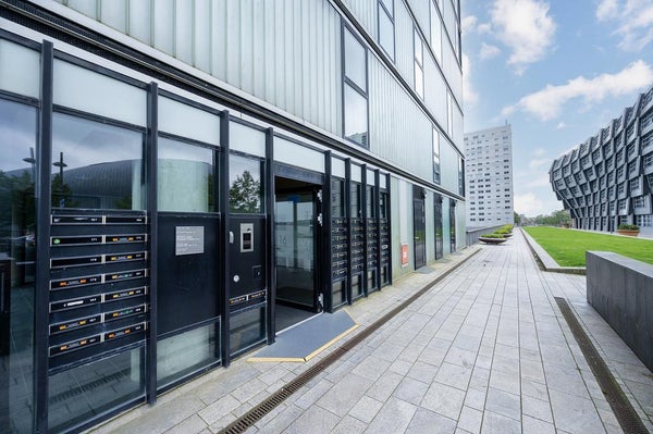 I due ascensori sono raggiungibili tramite l'ingresso centrale con cassette postali e citofoni. Puoi anche smaltire i rifiuti nell'area apposita. A causa della disposizione al piano terra, c'è spazio di stoccaggio extra nell'appartamento, il che aumenta il comfort.