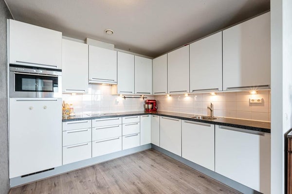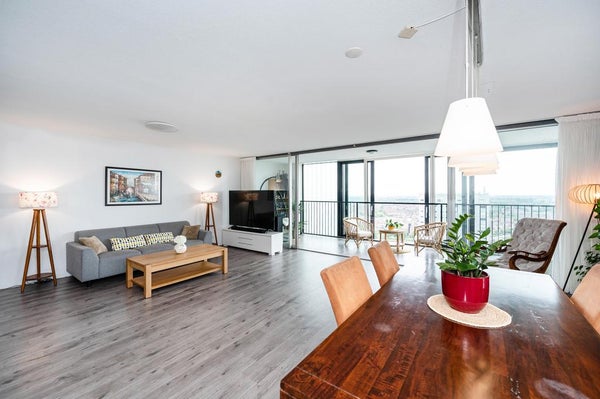 Situato al 16° piano, questo appartamento offre una bellissima vista sul lago e tramonti mozzafiato. Dall'entrata hai accesso a tutte le stanze. Questo appartamento ha un soggiorno molto spazioso, incluso un balcone. Il soggiorno è dotato di pavimenti in laminato. Dal soggiorno puoi godere della vista spettacolare sull'acqua o sul vivace centro cittadino. Le grandi finestre forniscono molta luce e aria fresca, ci sono addirittura tre porte scorrevoli, di cui una doppia. La cucina semi-aperta è dotata di elettrodomestici integrati come: piano cottura elettrico con cappa, combinazione frigorifero-congelatore, forno combinato e lavastoviglie. Inoltre, due ripostigli sono accessibili dal corridoio, di cui uno con spazio per lavatrice e asciugatrice, tre camere da letto, un WC moderno con lavabo e il bagno dotato, tra l'altro, di una cabina doccia con doccia a pioggia, mobile lavabo, vasca e radiatore di design.