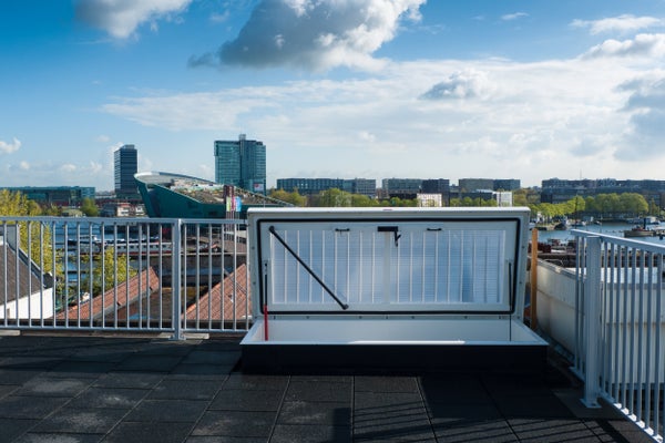 Questo spazioso attico in Foeliestraat ad Amsterdam è immediatamente disponibile per l'affitto. Con 105 metri quadrati, offre due camere da letto e una terrazza con una vista splendida sulla città. L'accesso all'attico avviene tramite un ascensore privato. All'ingresso, troverai un ampio soggiorno con cucina a vista, attrezzata con gli elettrodomestici necessari come frigorifero e forno. Le camere da letto sono entrambe spaziose, con la prima nella parte anteriore con porte a battente sul balcone e la seconda sul retro con armadio a muro. Il bagno moderno è dotato di doccia a pioggia e doppio lavabo. La terrazza è perfetta per allestire lounge e un barbecue, con ampio spazio per godersi. L'affitto è di 2600 € al mese, escluso.