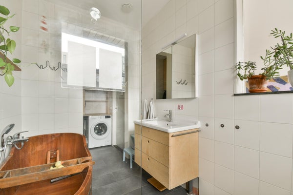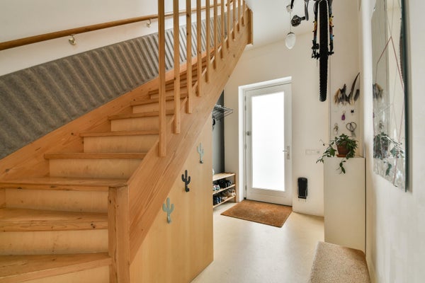 Al piano superiore ci sono 2 grandi camere da letto. E un bagno con vasca da bagno. È perfetto per una giovane famiglia ma anche come coppia puoi facilmente vivere qui.
