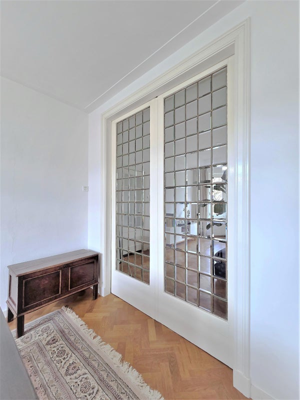 Il soggiorno elegante nella parte anteriore, dotato di un proiettore per serate cinematografiche accoglienti, si collega senza soluzione di continuità alla sala da pranzo sul retro tramite porte in suite originali. Da qui, porte francesi si aprono su un balcone esposto a est di circa 4 m².