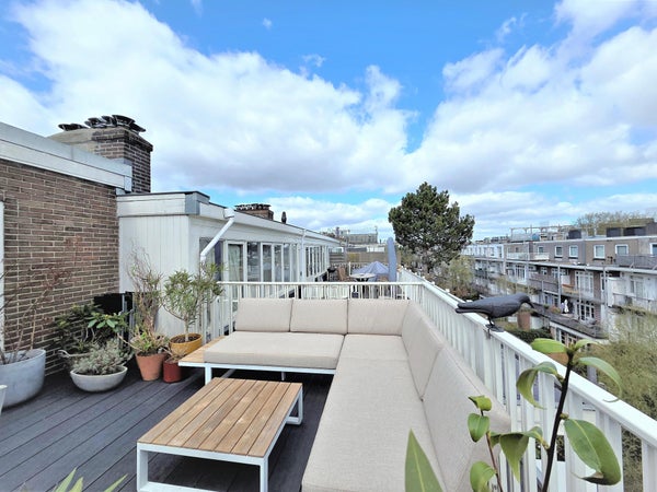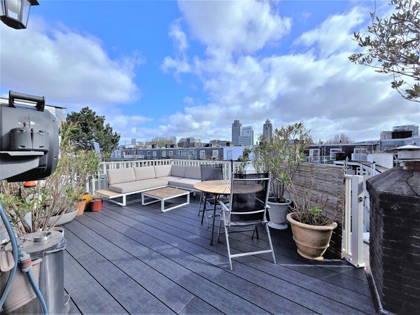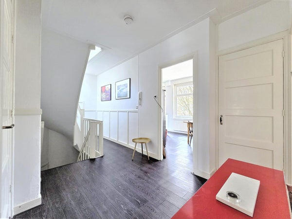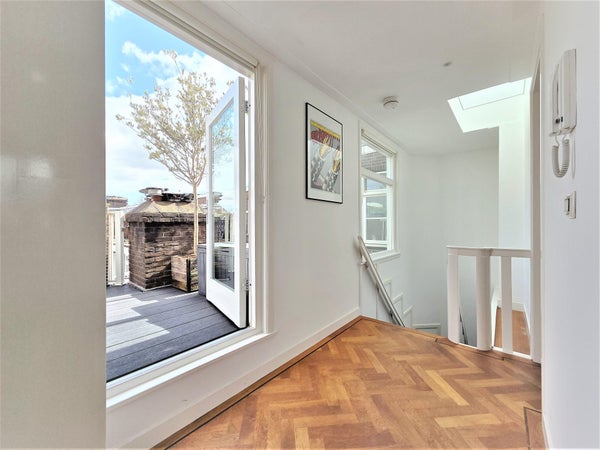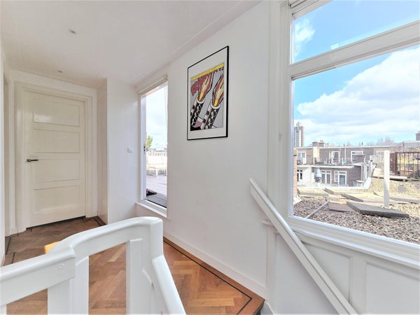 Un appartamento duplex incredibilmente luminoso e di grande dimensione di circa 120 m², distribuito su due piani. Con una fantastica terrazza solare di 22 m² e un ulteriore balcone, questa casa offre la perfetta fusione di vita interna ed esterna. Immerso in una strada alberata e ampia nel ricercato Rivierenbuurt.