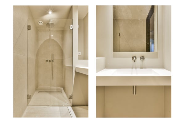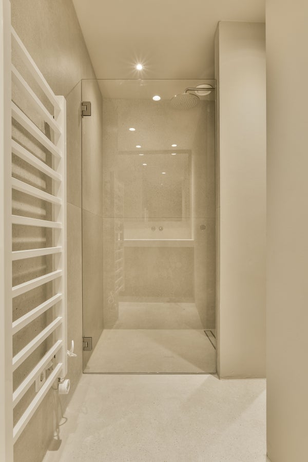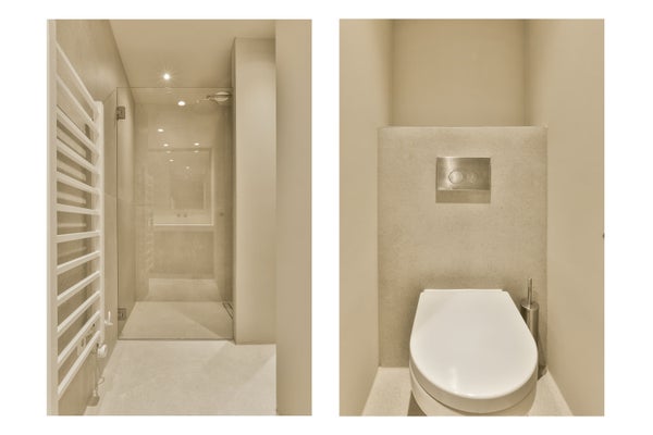 L'appartamento dispone di un secondo bagno con doccia a pioggia di lusso e un doppio lavabo. C'è anche un WC separato nel corridoio. E c'è un ampio ripostiglio dove si trova anche il collegamento per la lavatrice. In tutto l'appartamento c'è un bel pavimento a spina di pesce con un aspetto in legno rustico. Tutti i pavimenti all'interno dell'appartamento sono dotati di riscaldamento a pavimento.