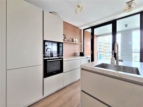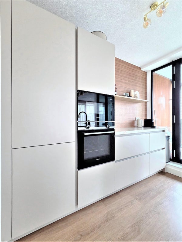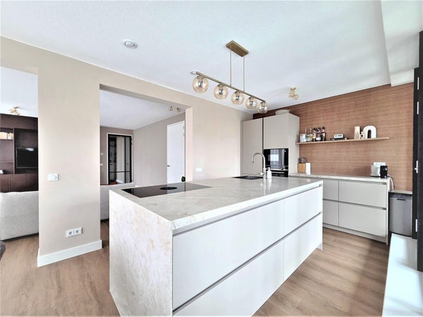 L'appartamento, completato nel 2025, combina comfort, lusso e sostenibilità. Il soggiorno spazioso si affaccia su una cucina open space con isola, dotata di tutti gli elettrodomestici, inclusi un piano cottura a induzione Bora con ventilazione integrata. Dalla cucina si accede alla loggia di circa 8 m2.