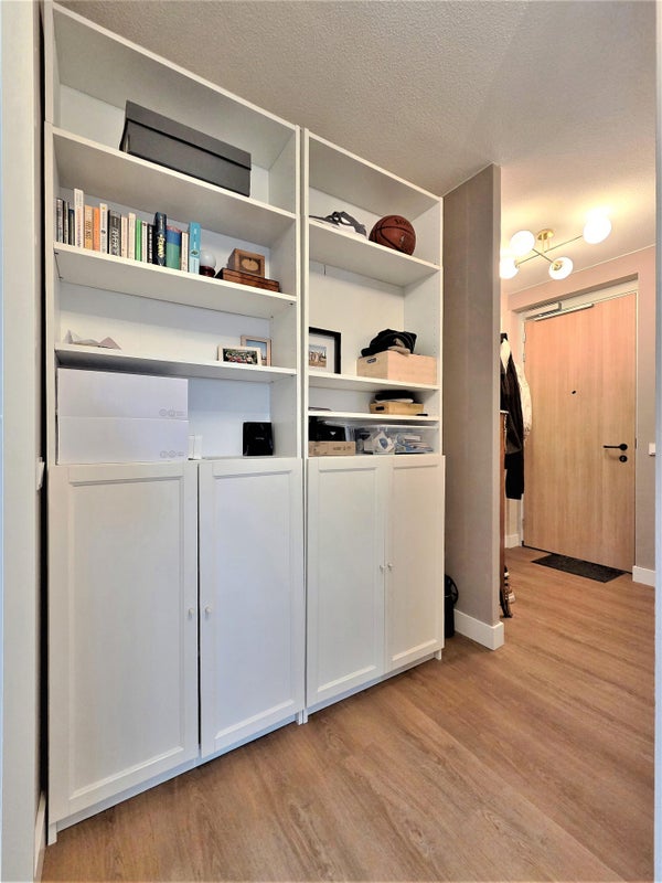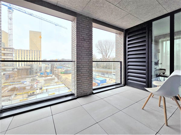 La disposizione è pratica e confortevole, con due camere da letto, tra cui una camera principale spaziosa. Il bagno moderno è dotato di una doccia a filo pavimento, lavabo, WC e radiatore per asciugamani. Inoltre, l'appartamento dispone di un secondo WC separato. Un'area lavanderia separata è attrezzata con una lavatrice e un'asciugatrice.