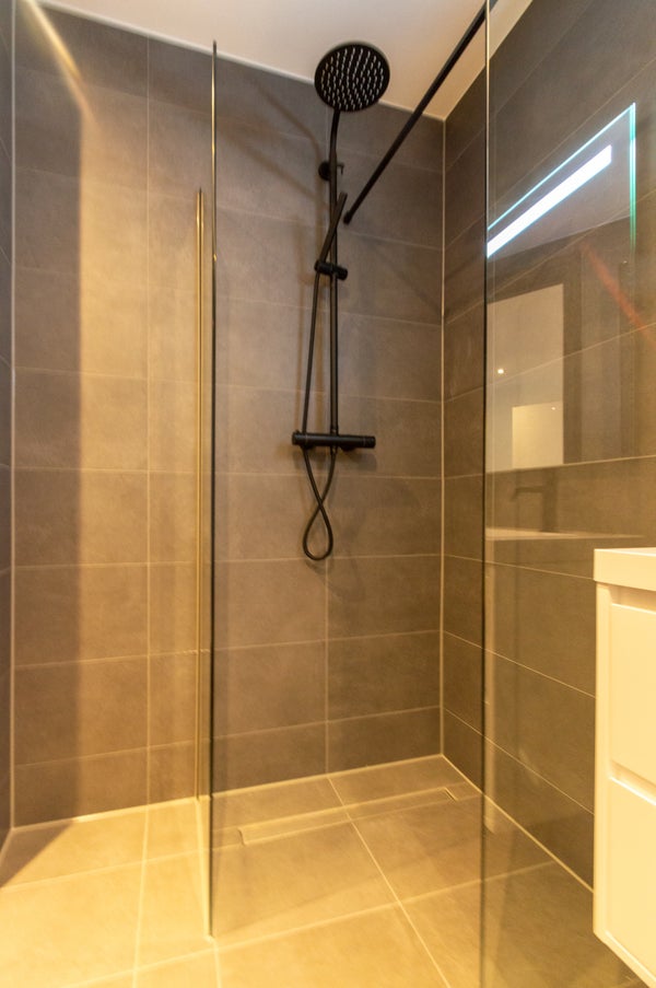 Sul retro si trova la spaziosa camera da letto, anche questa con un bel pavimento in legno. Accanto alla camera da letto troviamo il bagno, dotato di una lussuosa doccia separata, toilette e lavabo. Ampio balcone presente su tutto il retro dell'edificio. Il balcone è accessibile sia dalla camera da letto che dal soggiorno. L'edificio e l'appartamento sono stati ristrutturati con attenzione ai dettagli e sono stati installati faretti in tutta la casa.