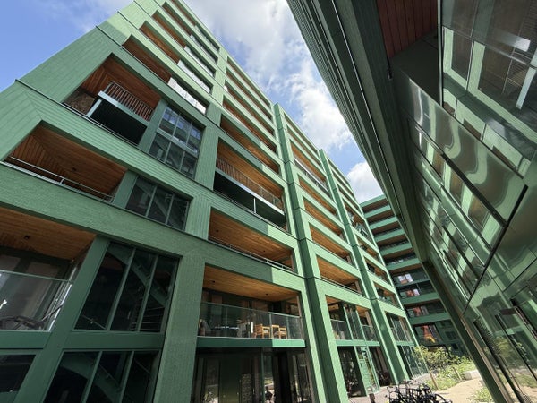 L'architettura di Basil è una storia a sé stante. Gli edifici sono composti da 96 strutture che ricordano tavoli impilati ordinatamente. Questo design giocoso e dinamico conferisce agli edifici un aspetto leggero e arioso, consentendo loro di integrarsi perfettamente nell'ambiente verde. Ognuno dei 250 appartamenti in affitto sostenibili, che variano da 2 a 3 camere, è stato progettato con attenzione ai dettagli per un piacere abitativo ottimale.