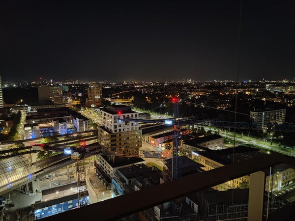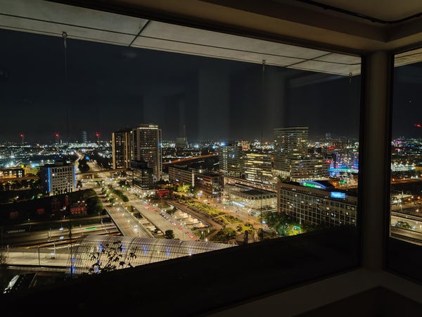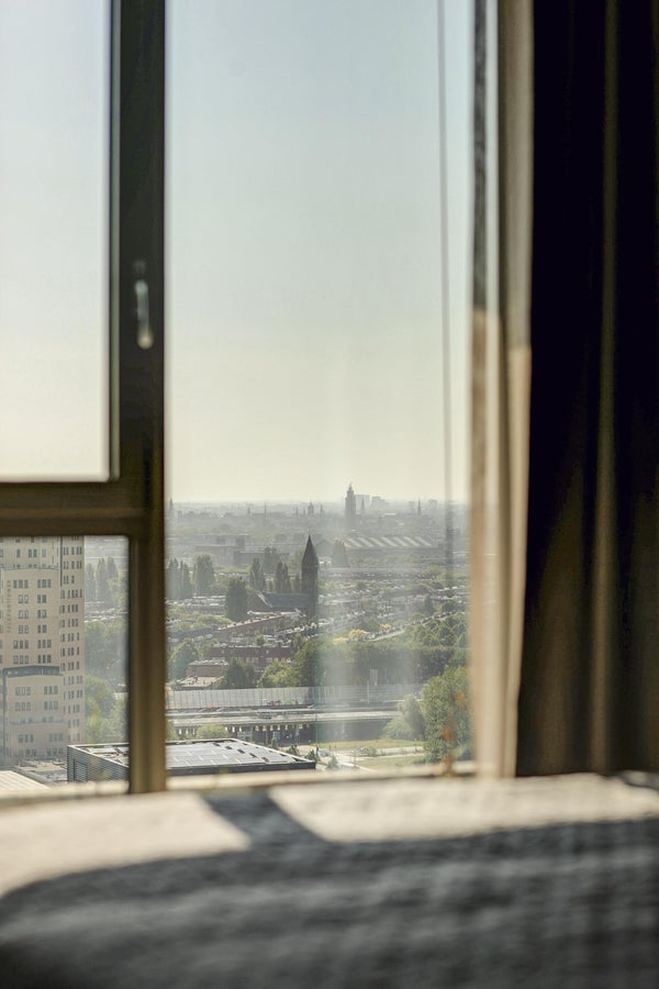 Il 18° piano è a livello di grattacielo per i criteri di Amsterdam, la vista sulla città, sull'IJ e oltre è fenomenale. Quando le luci della città si accendono, diventa ancora più bello. La città ai tuoi piedi.