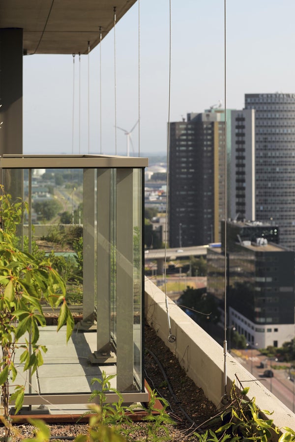 Vivere a Vertical, soprattutto in alto, è un'esperienza non olandese. L'atmosfera e l'aspetto dell'edificio, le viste, le camere per gli ospiti, la palestra e lo spazio comune con giardino sul tetto.