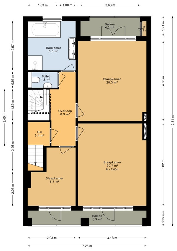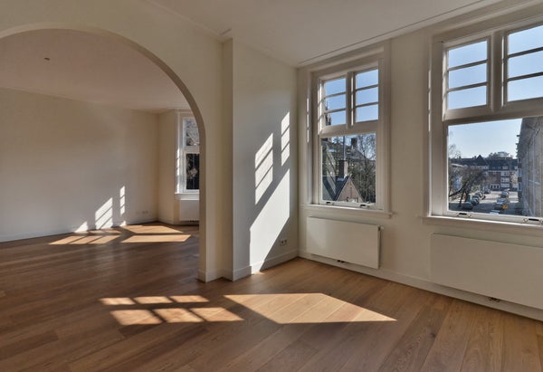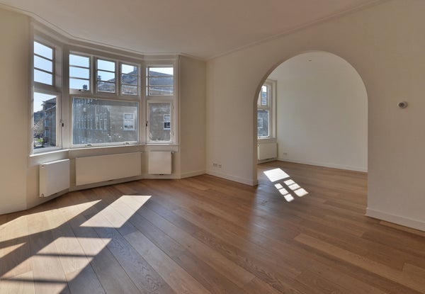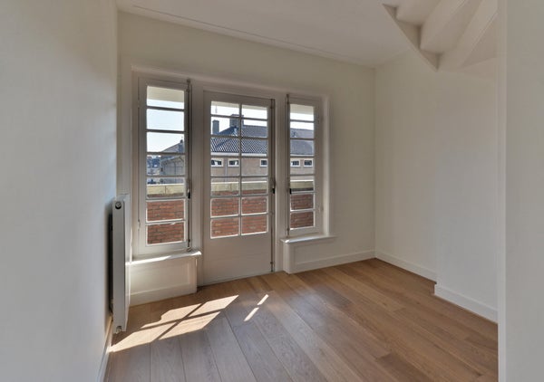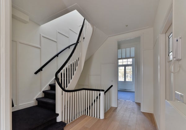 Questo spazioso appartamento arredato ha un ingresso privato e una scala, con più livelli e una grande terrazza sul tetto rivolta a ovest per sole pomeridiano e serale. Situato ad Amsterdam Oud-Zuid, tra la Gerrit van der Veenstraat e la Stadionweg, offre una vista splendida sulla Anthonie van Dijckstraat. Il secondo piano include un ampio soggiorno in forma di L con una finestra a bay e porte francesi che conducono al balcone, una cucina chiusa attrezzata con elettrodomestici Siemens e un WC sospeso. Al terzo piano ci sono due ampie camere da letto e una terza camera/studio, oltre a un bagno luminoso con doccia walk-in e vasca. L'appartamento è dotato di tende, parquet a spina di pesce oliato e collegamenti per una cucina nel soffitta. La durata minima dell'affitto è di 1 anno, con un deposito di 12.000 €.