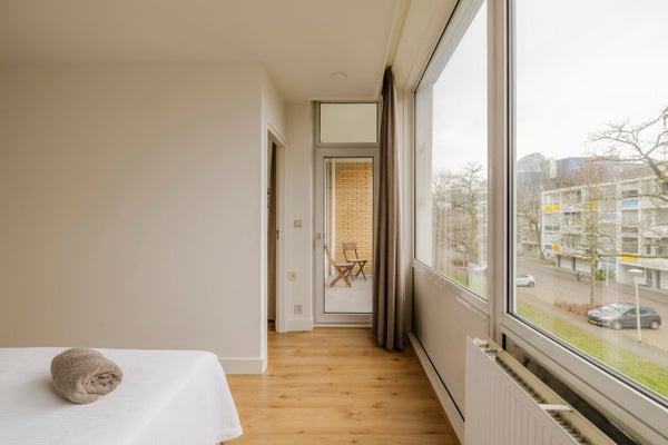 Questo appartamento luminoso e spazioso di circa 95 m² si trova in una strada tranquilla vicino alla Zuidas ad Amsterdam-Zuid. Ha due ampie camere da letto e una cucina di lusso. Con balconi sia davanti che dietro, puoi godere di una vista libera e di molta luce naturale. La posizione è ideale, a pochi passi dalla Zuidas, dalla metropolitana e dalla stazione dei treni. I negozi sulla Stadionweg e vari ristoranti sono vicino, mentre il Vondelpark e l'Amsterdamse Bos sono a pochi minuti in bicicletta. L'appartamento è parzialmente arredato, disponibile immediatamente, con un affitto di € 2.575 al mese, escluse le spese.