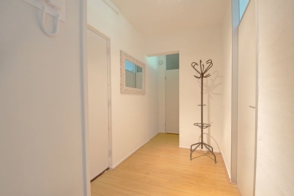 Secondo piano: ingresso con videointerfono e armadio contatore, due camere da letto, un bagno separato con lavabo, un bagno con vasca, lavabo e attacco per la lavatrice, un soggiorno luminoso e una cucina ad angolo. Dal soggiorno c'è accesso al balcone con una piacevole vista sulle aree verdi circostanti. Tutto l'appartamento è rifinito con un pavimento in laminato di alta qualità.