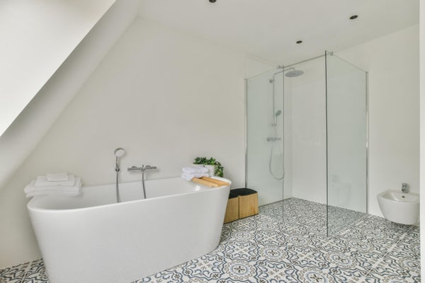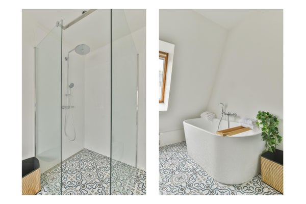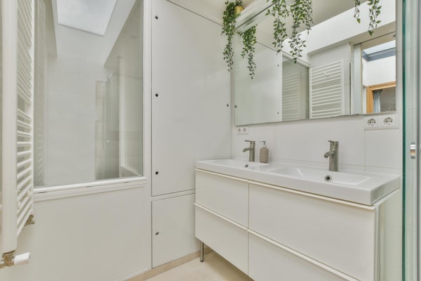 Bagno perfetto, anche con lucernario, doccia a pioggia, doppio lavabo e servizi igienici.