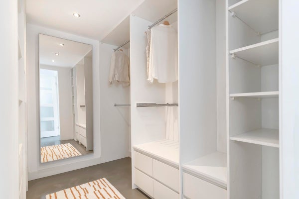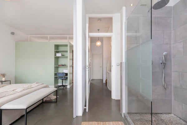 In questo piano troverai la prima e la seconda camera da letto, con un armadio a muro collocato comodamente tra di esse. C'è anche il primo bagno e un ampio bagno con doccia a pavimento e una vasca da bagno separata.