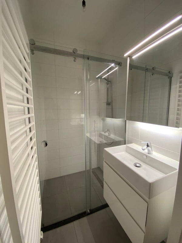 Appartamento trilocale completamente ristrutturato. Dall'ingresso si ha accesso a tutti gli ambienti. Il soggiorno spazioso è in comunicazione aperta con la sala da pranzo. La cucina è dotata di tutti gli elettrodomestici integrati necessari, tra cui un piano a induzione, lavastoviglie e forno/microonde combinato. L'immobile dispone di due camere da letto, di cui una sul retro. Inoltre, ci sono un bagno, un WC separato e uno spazio separato per la lavatrice. L'intera proprietà è rifinita con un autentico pavimento in rovere.
