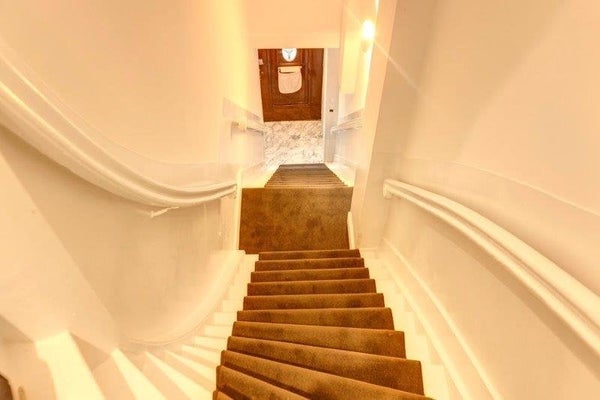 L'ingresso è accessibile tramite una maestosa scala fino al 2° piano. L'intero appartamento è dotato di un pavimento a spina di pesce e soffitti alti, creando molto spazio. Il luminoso soggiorno con una finestra ad arco è spazioso e luminoso e si affaccia su una lussuosa cucina aperta. Questa cucina è dotata di forno, frigorifero/congelatore, piano cottura a gas a 5 fuochi con bruciatori wok, cappa aspirante, molto spazio per la dispensa e un rubinetto di design.