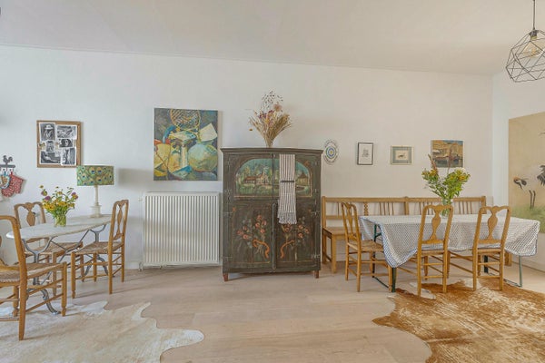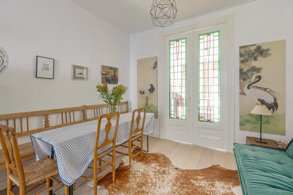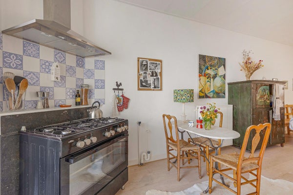 L'appartamento è arredato in uno stile classico e accogliente, con mobili antichi in tutto il soggiorno. La maggior parte dei mobili è stata acquistata presso case d'asta olandesi, conferendo alla casa un'atmosfera calda e autentica. L'appartamento non è progettato come un hotel di lusso, ma come una casa confortevole e amata.