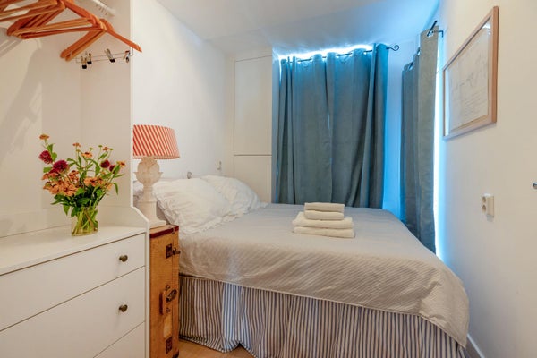 Attraverso porte ensuite si entra nella camera da letto principale, che ha un balcone più piccolo con vista sulla strada. Questo è un posto piacevole per un caffè del mattino. Come in qualsiasi vivace area di città, in generale è tranquillo, ma potrebbe non essere ideale per i dormienti estremamente sensibili.