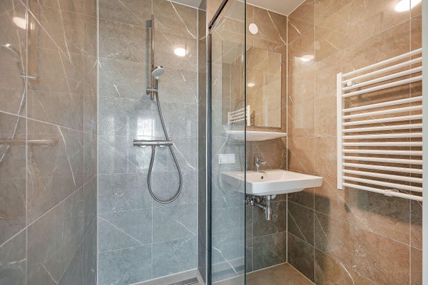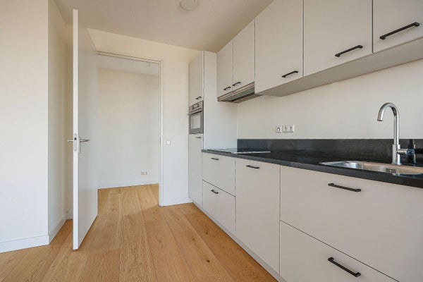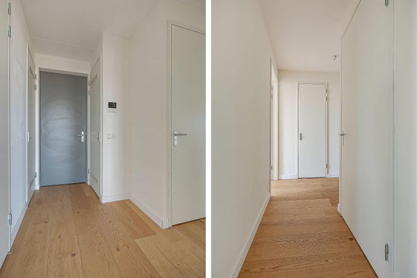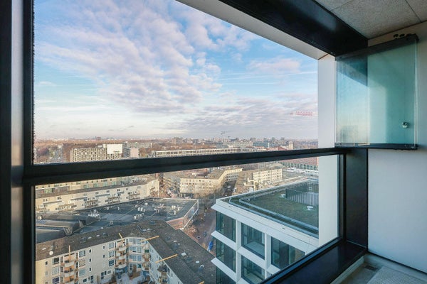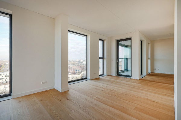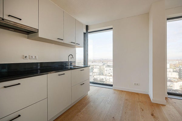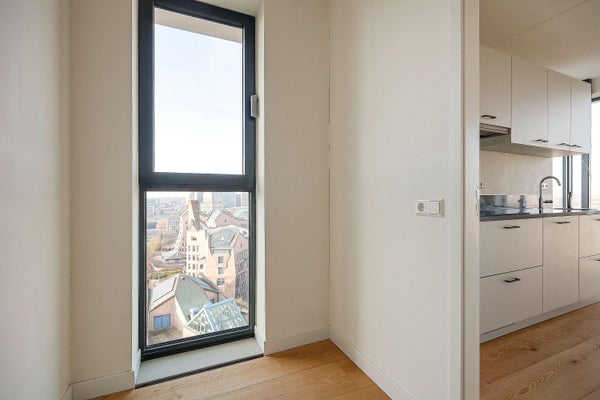Al 17° piano troverai questo ampio appartamento con una vista mozzafiato. Entri in un ampio corridoio con il contatore, l'armadio con il riscaldamento urbano e l'armadio con il sistema di ventilazione meccanica. Il corridoio dà accesso al bagno di servizio con lavabo e al bagno con lavabo e doccia. Il soggiorno ha una cucina a vista. Grazie alle numerose finestre, è un appartamento luminoso con una vista mozzafiato. Dal soggiorno si accede alla loggia. La cucina è dotata di elettrodomestici integrati come un forno a microonde combinato, frigorifero, piano cottura a induzione, cappa e lavastoviglie. Accanto alla cucina hai accesso a un ripostiglio con il collegamento per la lavatrice. La spaziosa camera da letto ha anche una grande finestra. L'intero appartamento è dotato di riscaldamento a pavimento.