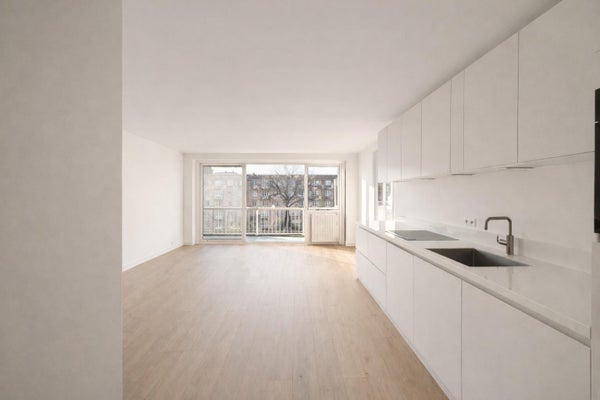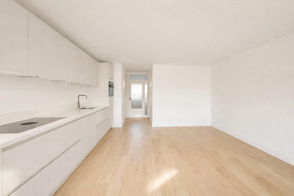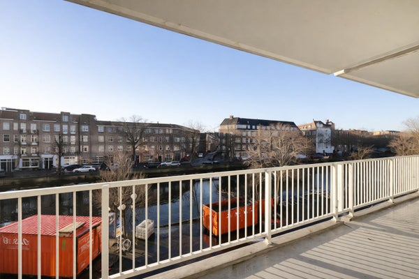 Questo appartamento recentemente ristrutturato sulla Sloterkade dispone di un ampio balcone con vista libera sul'acqua. L'intera proprietà è dotata di un pavimento in rovere chiaro e intonaco bianco lucido, il che crea un ambiente moderno e luminoso.