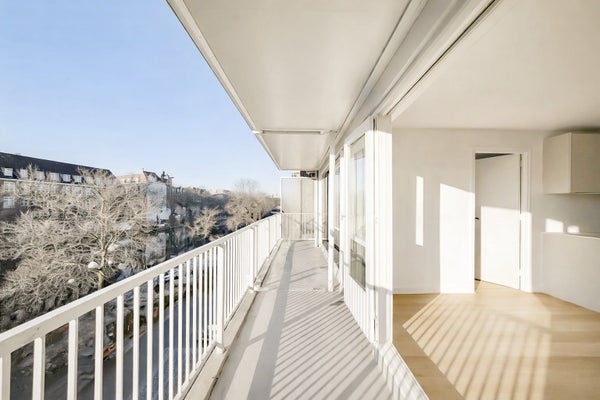 Entrambe le camere da letto hanno grandi finestre che lasciano entrare molta luce naturale. La camera da letto più grande ha accesso al balcone, mentre la seconda camera dispone di un armadio a muro. Il bagno è rifinito in modo lussuoso con piastrelle in pietra naturale, una doccia a filo con parete in vetro e un mobile lavabo con specchio illuminato. Il bagno separato è rivestito nello stesso stile.