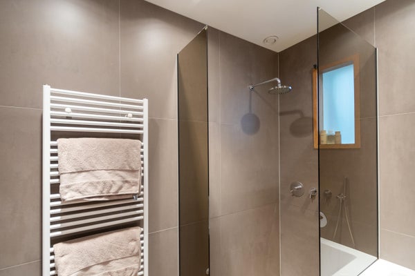 La camera da letto principale è situata in una posizione tranquilla e offre un ambiente di sonno confortevole con ampio spazio di stoccaggio grazie agli armadi a muro. Il bagno di lusso è dotato di vasca, doccia a pioggia e lavabo, rifinito con materiali contemporanei.